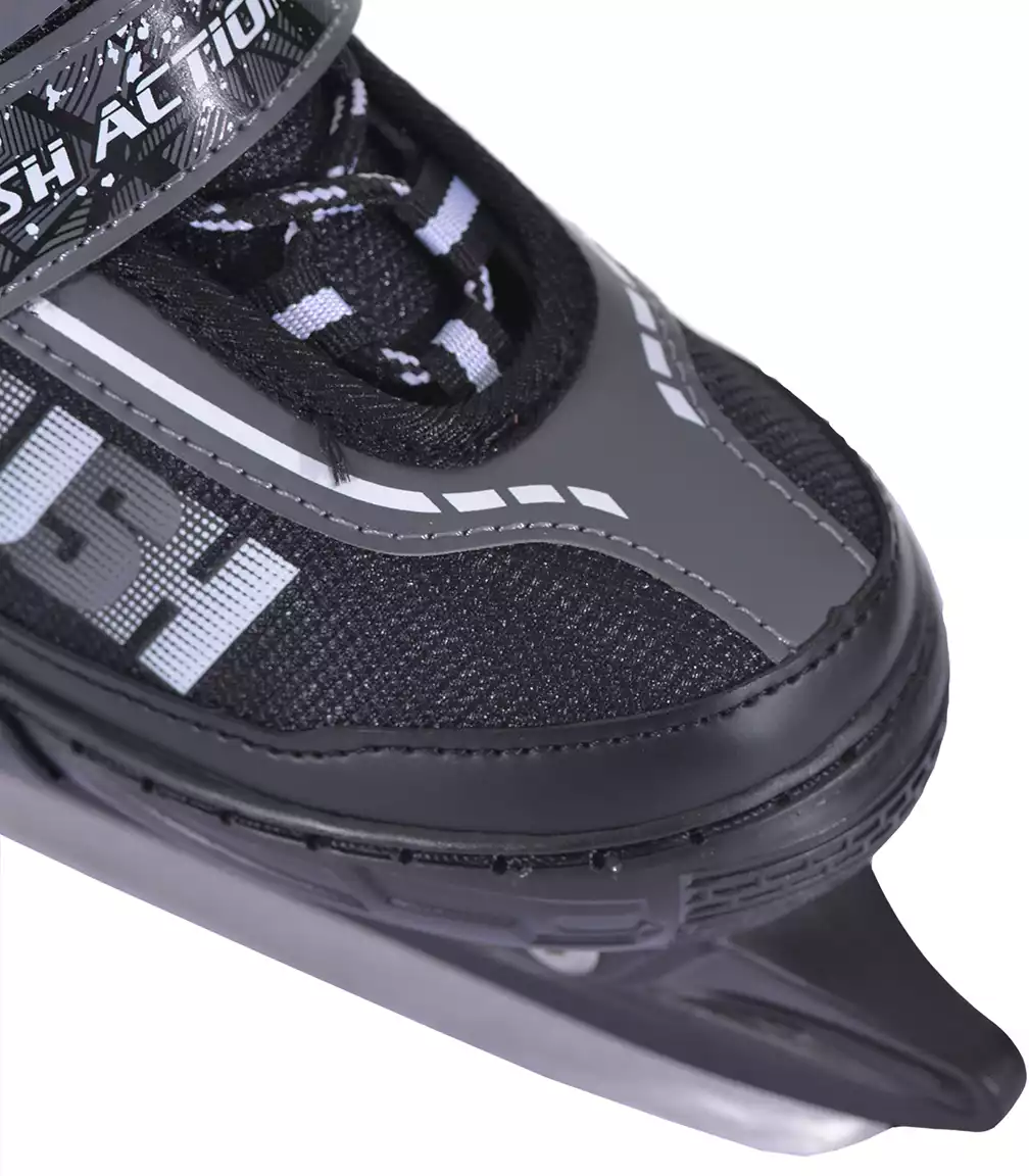 Раздвижные коньки RUSH ACTION подходят для любительского катания и представляют собой наглядный пример высокого качества. Отличительная особенность данной модели коньков - раздвижная конструкция. Она очень популярна, так как отпадает потребность каждый год приобретать новые коньки вслед за ростом ноги ребенка. Удобный ботинок выполнен из искусственной кожи, синтетической ткани и армирован каркасом из жесткого полиуретана. Внутренняя подкладка и стелька сделаны из синтетического текстиля, позволяющего сохранить комфорт и тепло во время катания. Анатомический крой ботинка, жесткая подошва гарантируют плотную фиксацию ступни и оберегают от травм. Удобный и надежный механизм застегивания состоит из шнуровки, клипсы с фиксатором и липучки. Лезвие из нержавеющей стали со специальным защитным напылением обеспечит наилучшее скольжение конька по льду. Лезвия имеют заводскую заточку. Максимально допустимая нагрузка 80 кг.