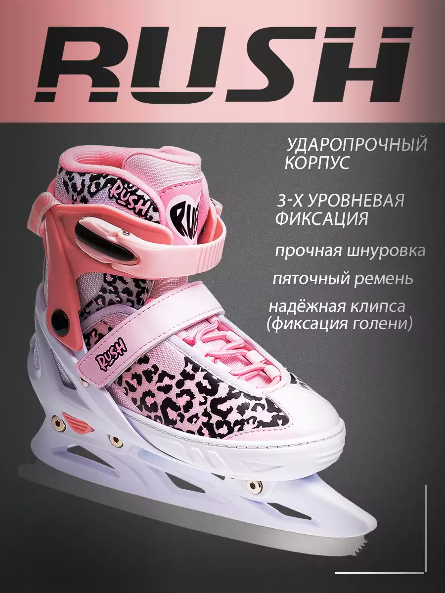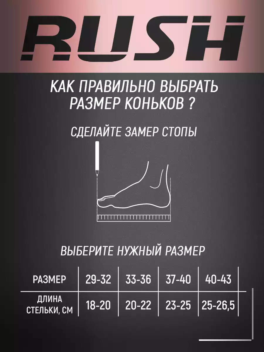 Раздвижные коньки RUSH ACTION подходят для любительского катания и представляют собой наглядный пример высокого качества. Отличительная особенность данной модели коньков - раздвижная конструкция. Она очень популярна, так как отпадает потребность каждый год приобретать новые коньки вслед за ростом ноги ребенка. Удобный ботинок выполнен из искусственной кожи, синтетической ткани и армирован каркасом из жесткого полиуретана. Внутренняя подкладка и стелька сделаны из синтетического текстиля, позволяющего сохранить комфорт и тепло во время катания. Анатомический крой ботинка, жесткая подошва гарантируют плотную фиксацию ступни и оберегают от травм. Удобный и надежный механизм застегивания состоит из шнуровки, клипсы с фиксатором и липучки. Лезвие из нержавеющей стали со специальным защитным напылением обеспечит наилучшее скольжение конька по льду. Лезвия имеют заводскую заточку. Максимально допустимая нагрузка 80 кг.