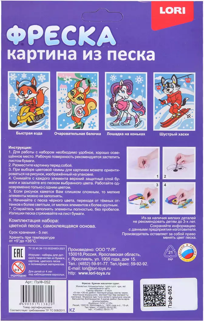 В корзинуРисование песком является необычным видом творчества и приносит пользу для развития ребенка. Основной материал - кварцевый цветной песок, имеющий мелкую фракцию. Все, что нужно сделать, это отклеить фрагмент пленки от основы с нужным цветом, насыпать небольшое количество песка на основу, а затем распределить его пальцем. Этот уникальный вид искусства развивает не только творческие навыки, но и мелкую моторику, внимательность и усидчивость. размер картины: 14,5х21 см