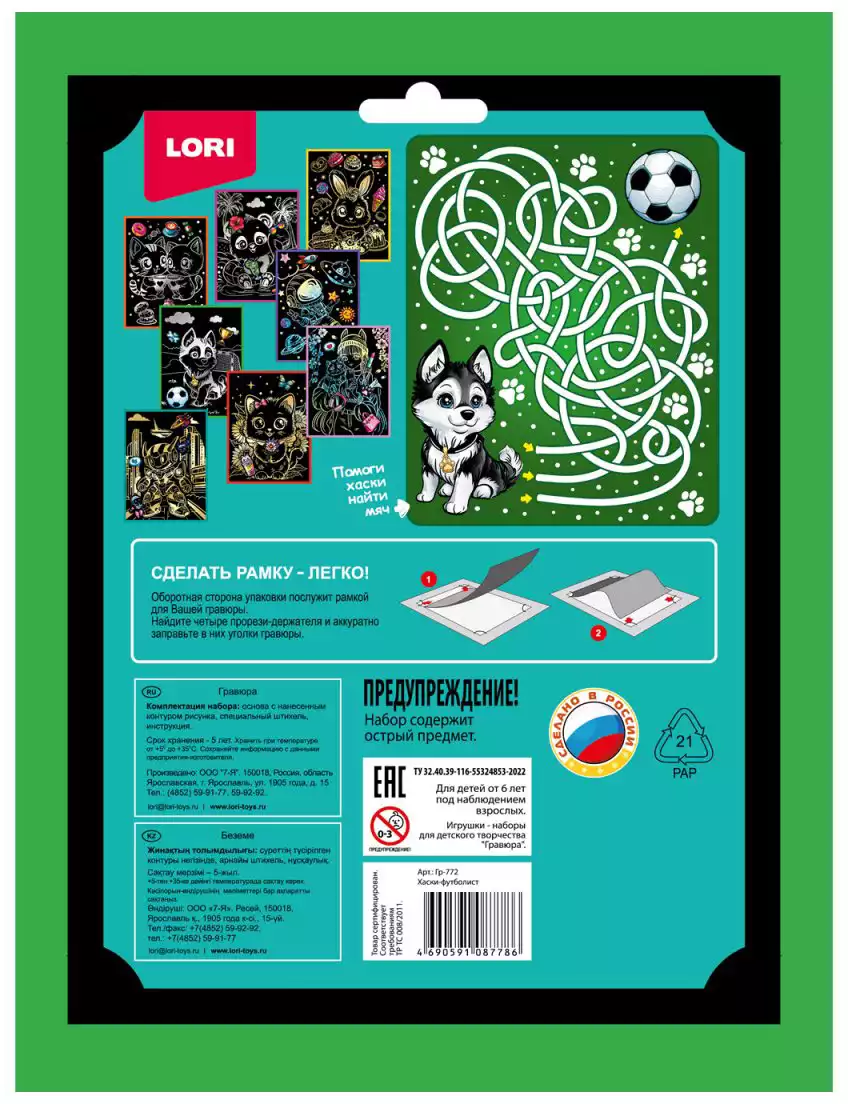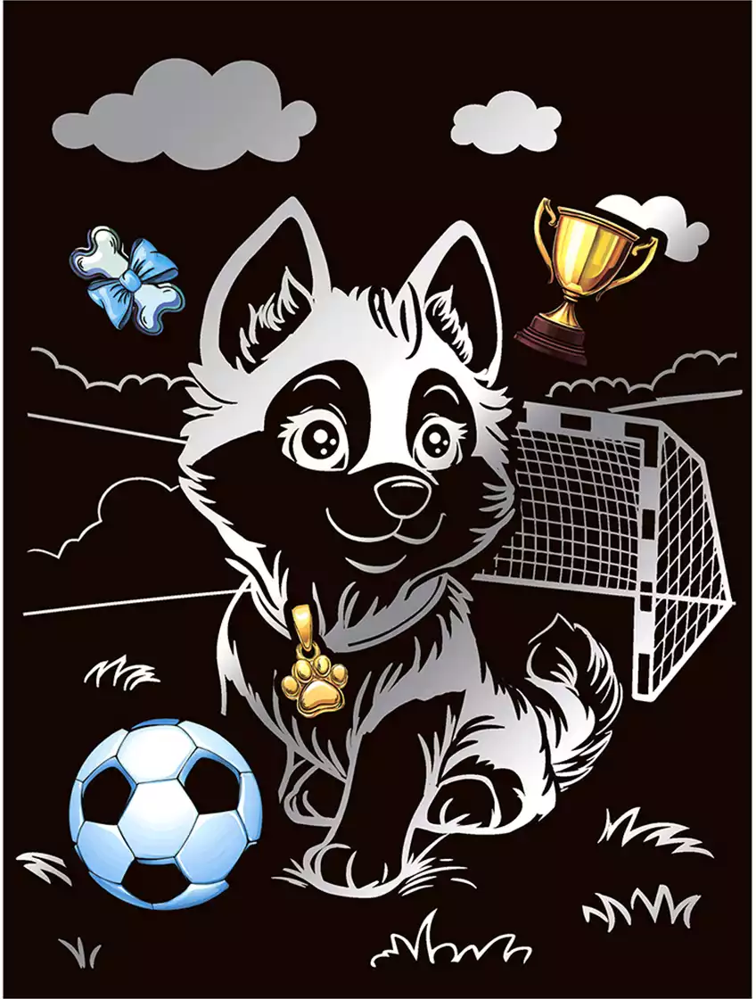 Гравюра со стикерами Хаски-футболист 18х24см серебро Гр-772