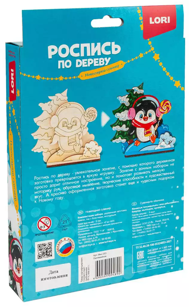 Роспись по дереву Новогодний сувенир Пингвинёнок Фнн-053