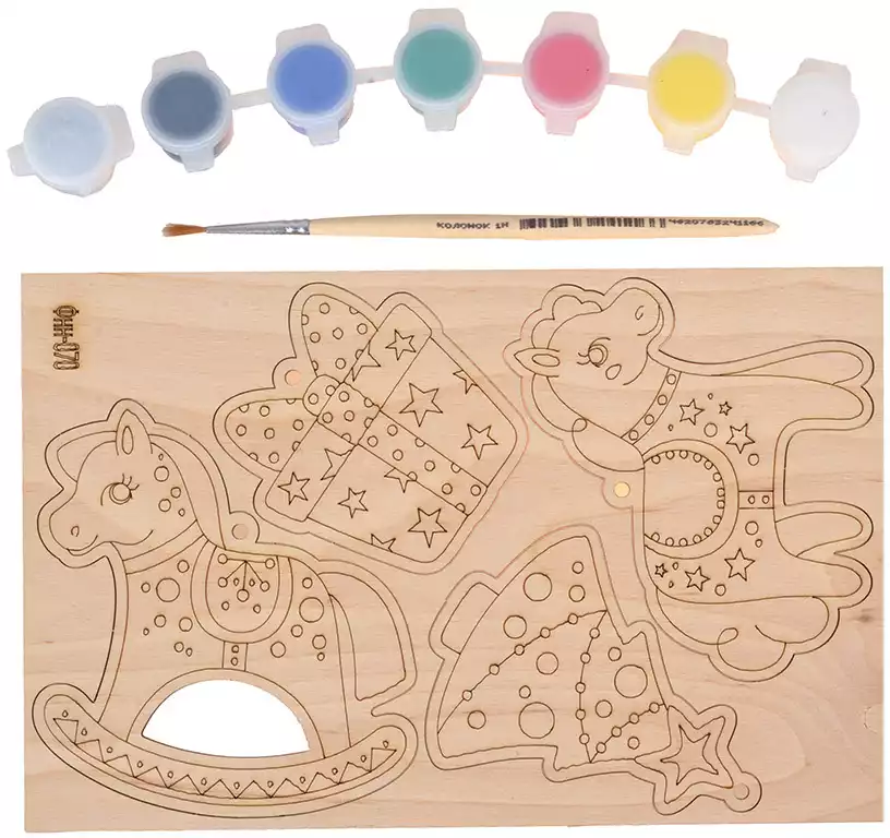 В корзинуНабор по созданию елочных игрушек включает в себя 4 заготовки из дерева, краски, кисть и лак с блестками. Особенность набора заключается в том, что роспись небольших деревянных игрушек позволит подарить ребенку новогоднее настроение, порадовать близких подарком, сделанным своими руками, проявить фантазию и сделать уникальные игрушки, которые будут украшать ёлку.