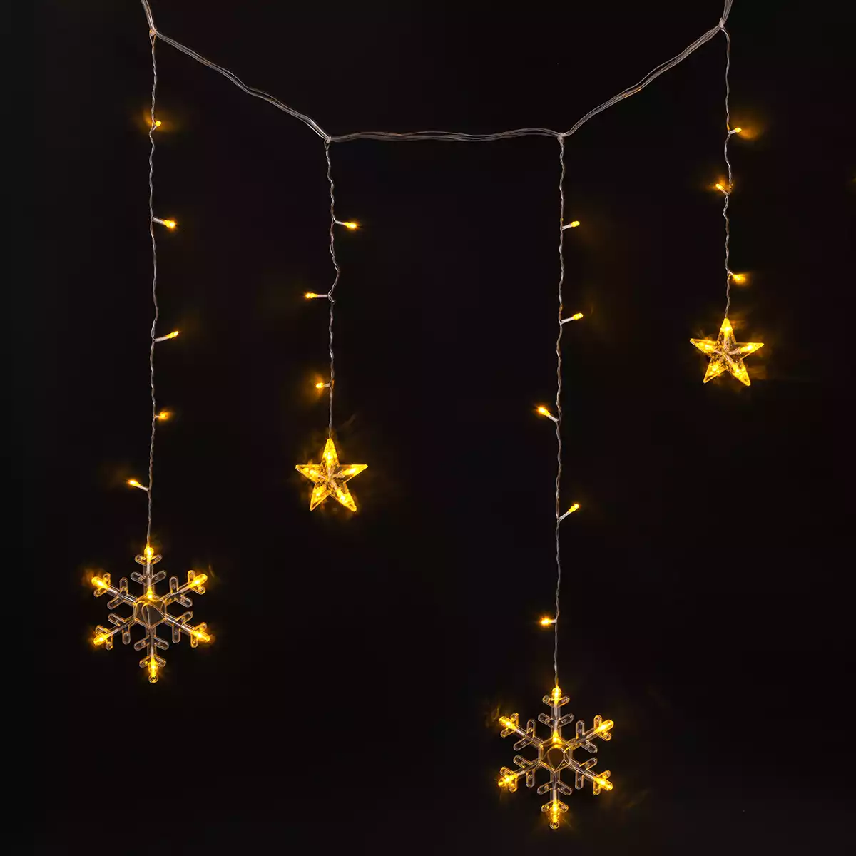 Светодиодная гирлянда 3х1 снежинки 120 Led теплый желтый IP20 от сети VUL34